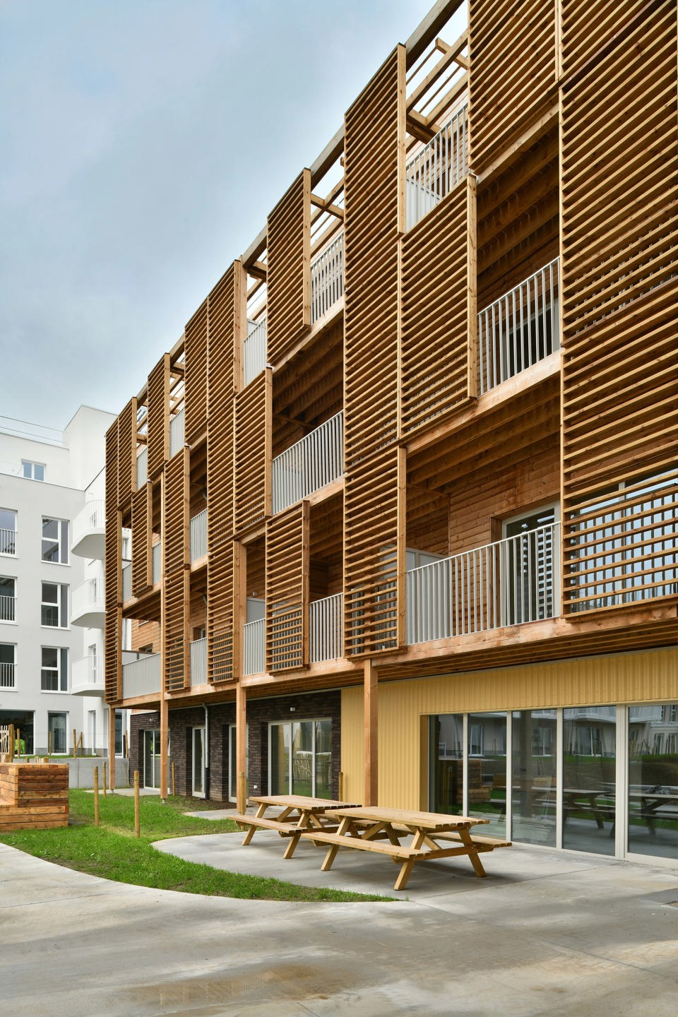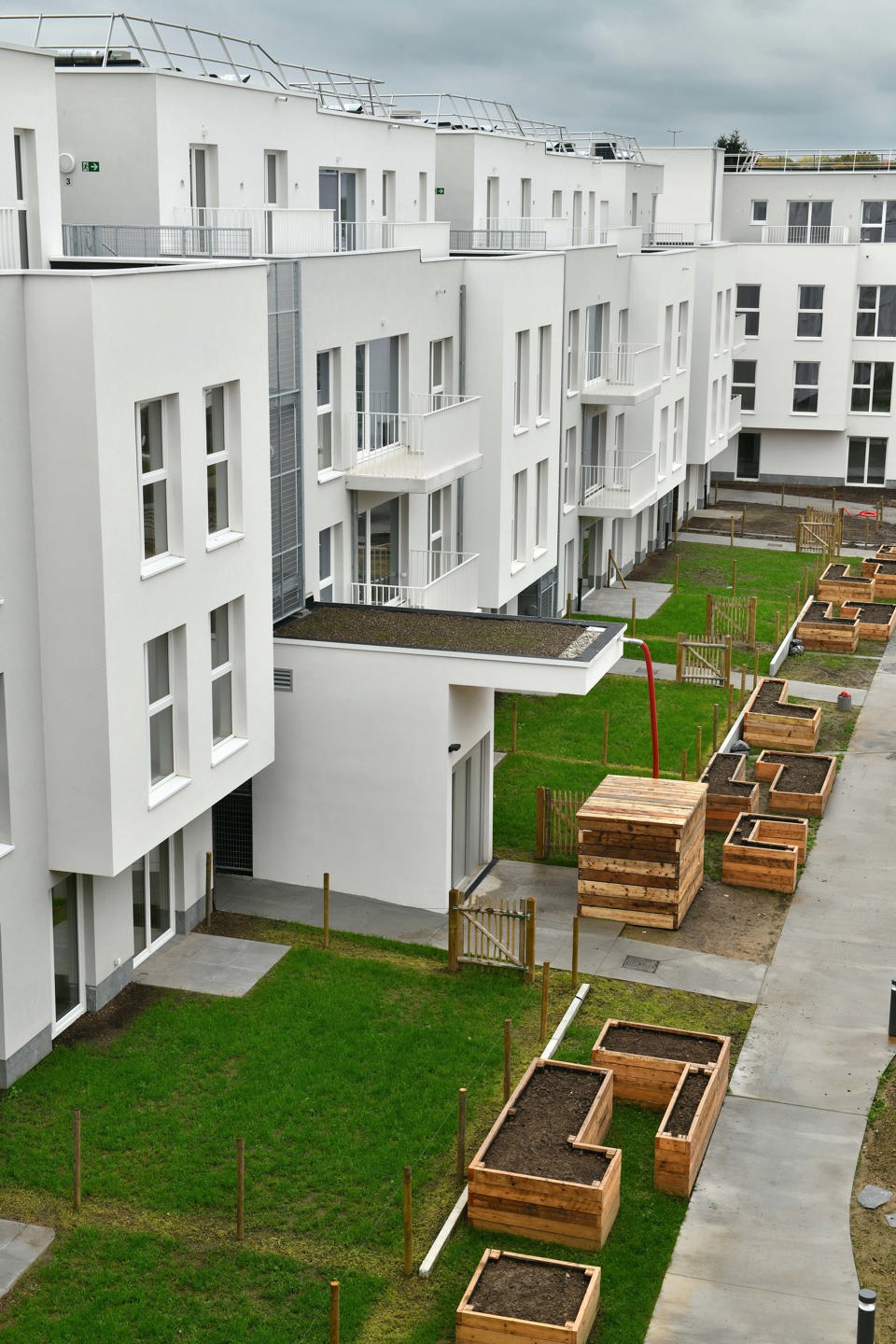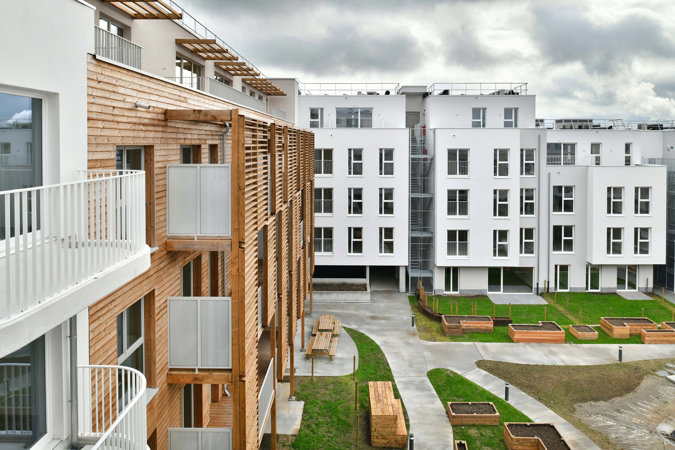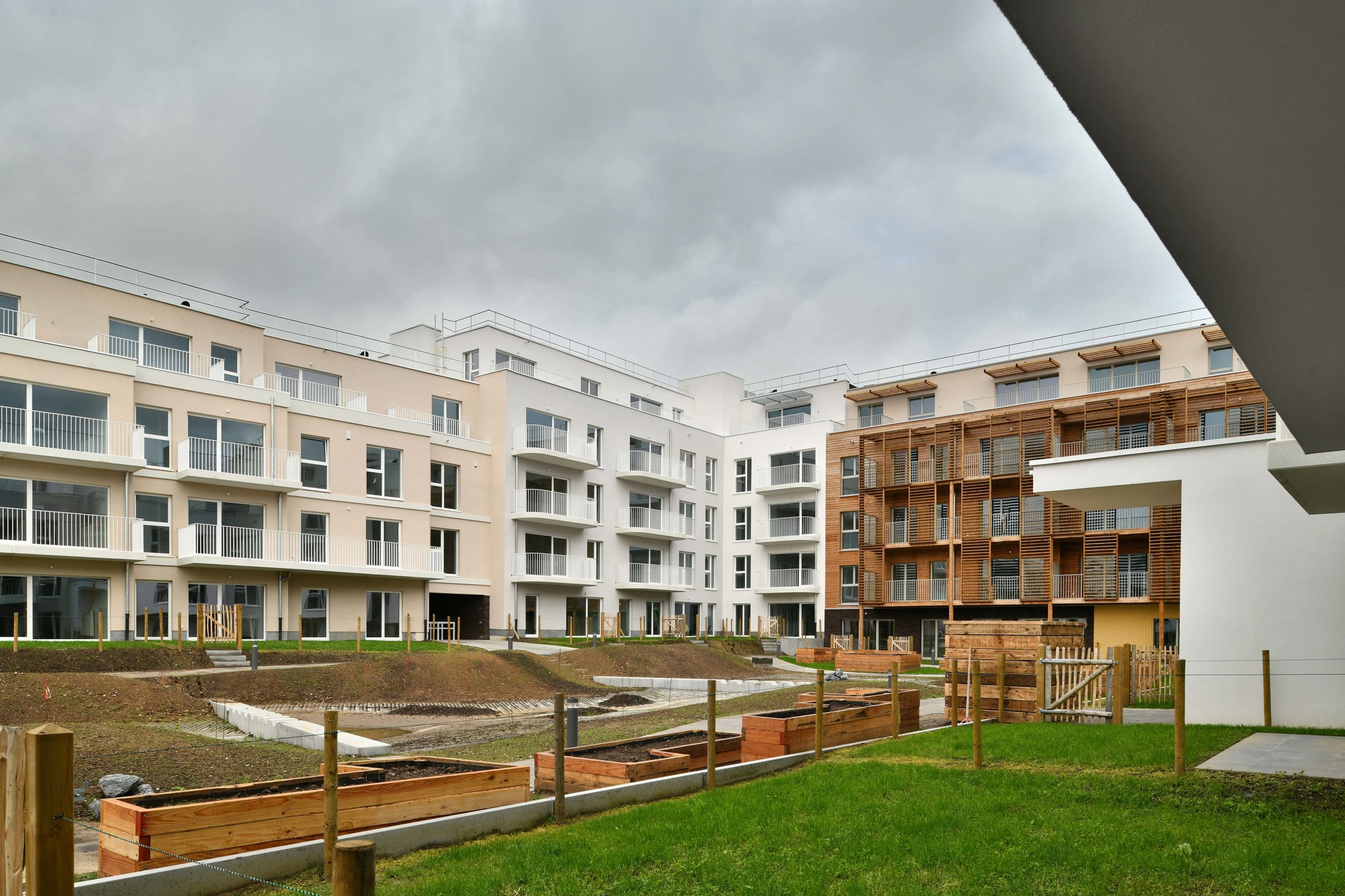 • Cœur d’îlot végétalisé avec rivière urbaine, jeux pour enfants, espaces de repos et zone potagère